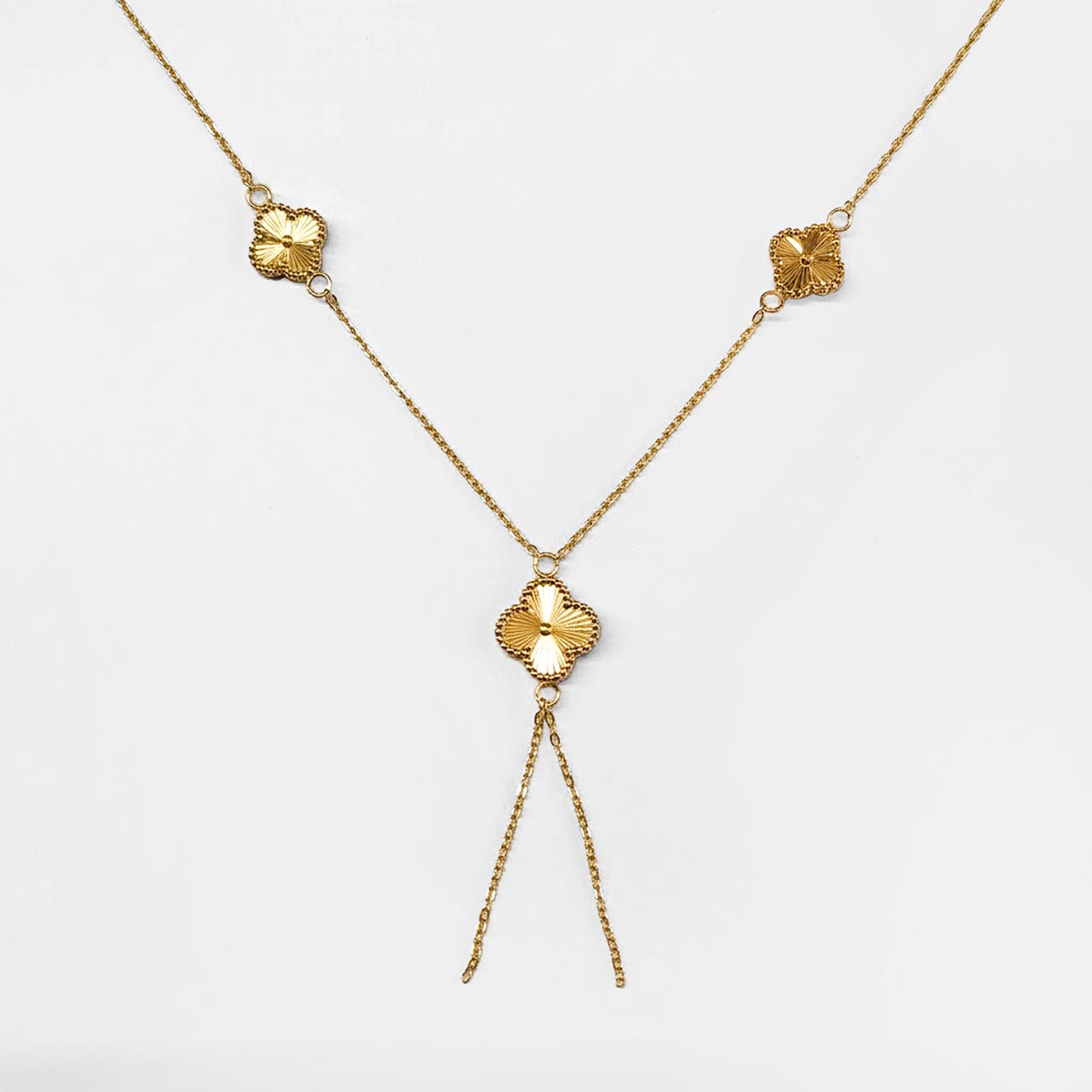 گردنبند ونکلیف ریش با الهام از طرح‌های کلاسیک و محبوب ونکلیف، جلوه‌ای لوکس، زنانه و چشم‌نواز ایجاد می‌کند. ترکیب پلاک‌های ونکلیف با آویزهای ریش‌دار، حرکتی لطیف و درخشش زیبا به گردنبند می‌دهد و آن را به انتخابی عالی برای استایل‌های رسمی، مهمانی و حتی استفاده روزمره تبدیل می‌کند.